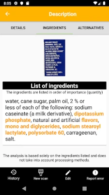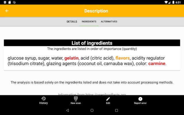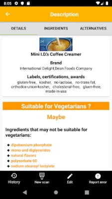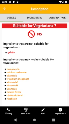 My vegetarian scanner application is easy to use, just scan the barcode on the packaging of a food product or a drink.
