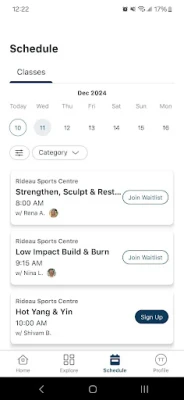 Welcome to Rideau Sports Centre! Our app offers everything you need to stay fit, healthy, and connected with our community. Check out these features in our app: